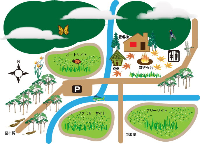 ※サイトの指定はフリーサイト以外は予約可能/先着順☆売店(軽食、飲料、雑貨)は管理棟にあります。9時~19時営業☆